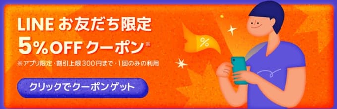 - 全商品5%OFFクーポン