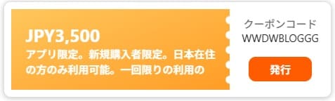 | その他の条件 | 初回購入、アプリ限定。割引上限3,000円まで。海外ディズニーリゾートのパークチケット(アメリカ・フランス)または直営ホテル(全て *一部対象外あり) が対象。 |