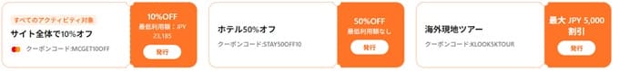 klook(クルック)はいろいろな種類のクーポンをたくさん配っています。