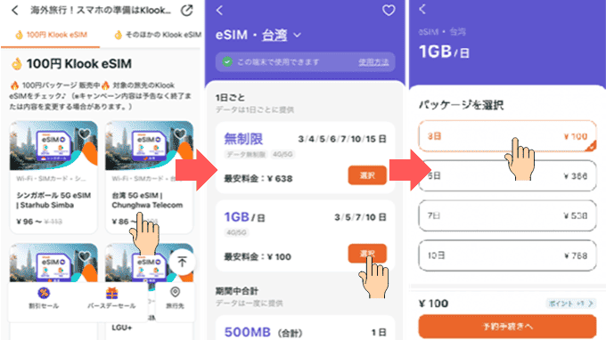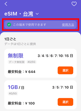 下の方の台湾eSIMを選択。