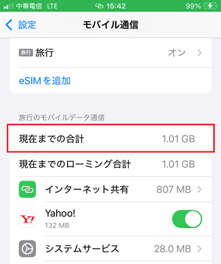 - 使い終わった「旅行」回線をオフにする