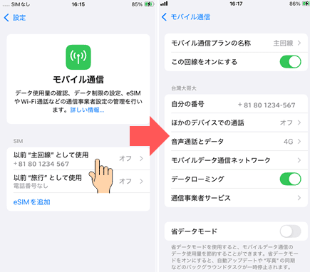eSIMに切り替える|到着後