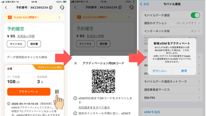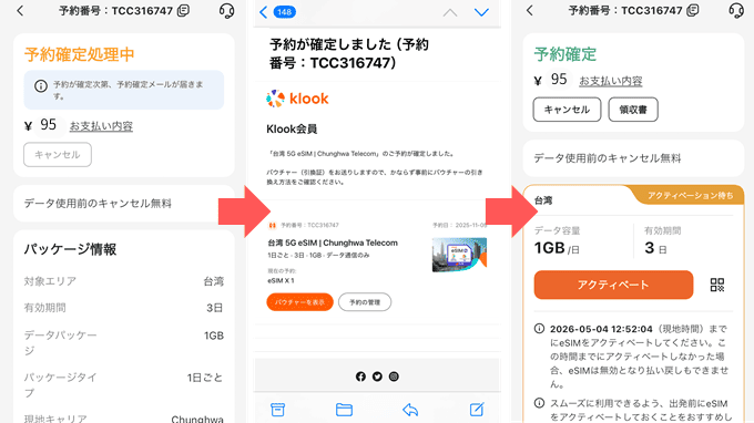 出国前にアクティベートしておけば、台湾の空港に着いてすぐに使えるので便利です。