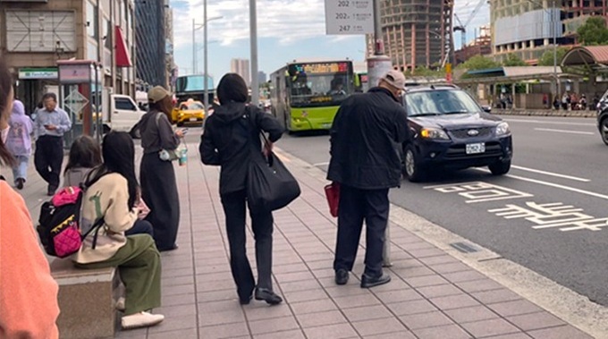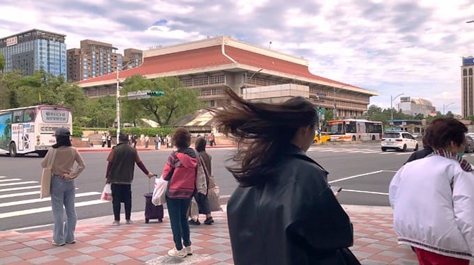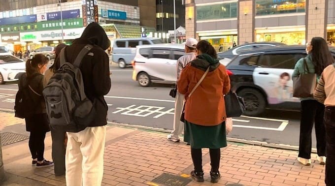 風対策でフードや帽子をかぶっている人もちらほら。