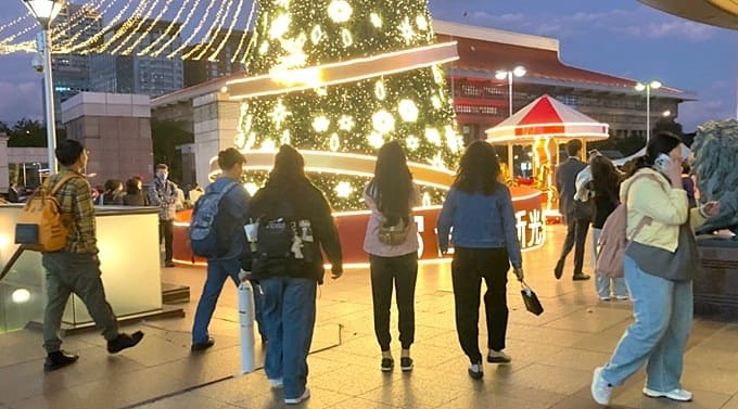 風があってちょっと肌寒いですが、ツリーを見ていると温かく感じます。