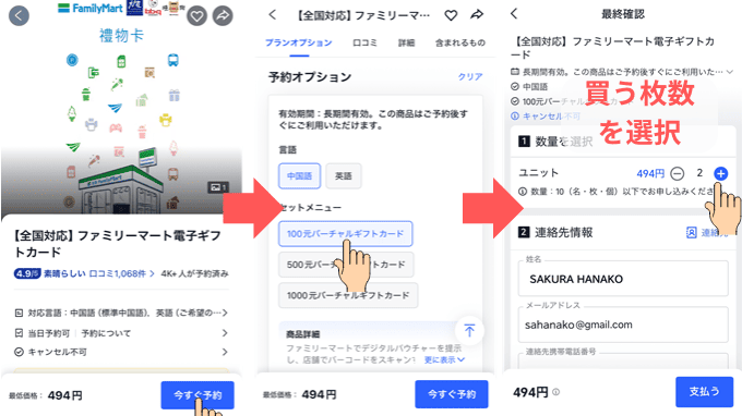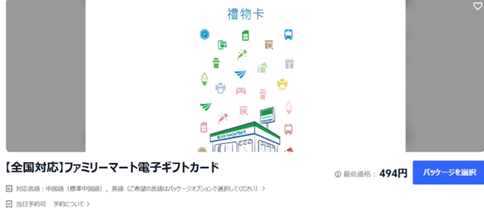 | ファミマギフトカード100台湾ドル分 | 494円 |