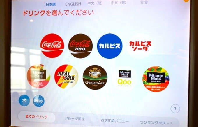 ドリンクバーは、オレンジジュース、緑茶。さらにソフトドリンク9種類。