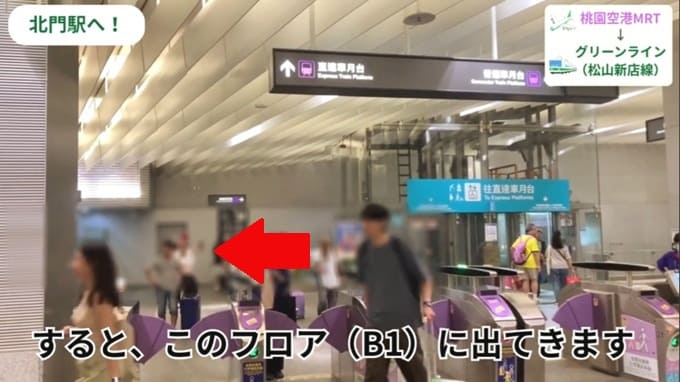 桃園空港MRT台北駅に到着したら、右手方向に進みます。