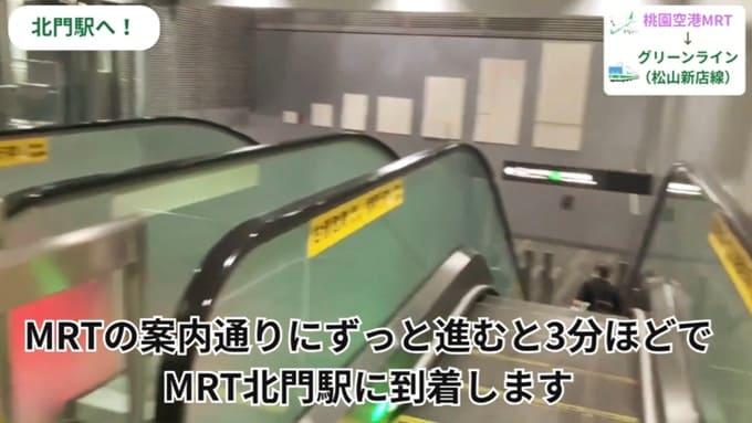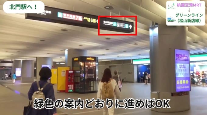 台北駅に着いたら、緑の松山新店線への案内の方向へ向かいます。