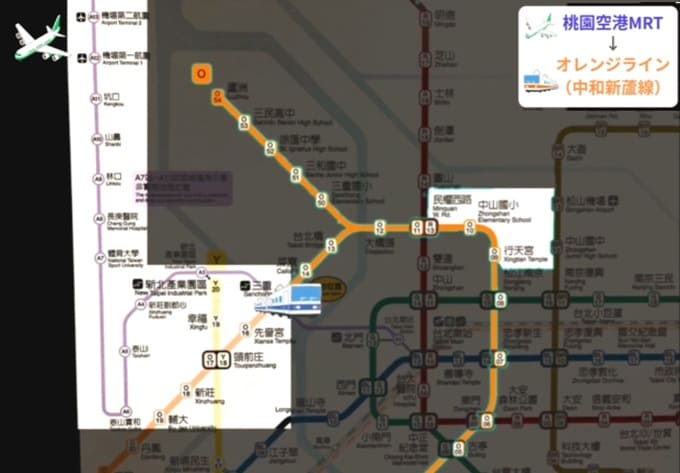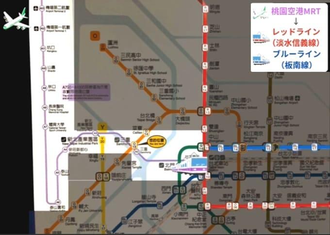 桃園空港MRTの第1・第2ターミナル駅から台北MRTへの乗り換えについて解説します。