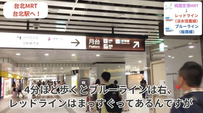台北MRTのレッドラインとブルーラインは構内でつながっています。