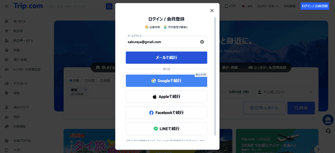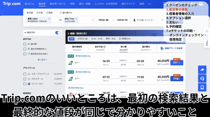 Trip.comでの航空券の予約方法を実際にやりながら解説していきたいと思います。