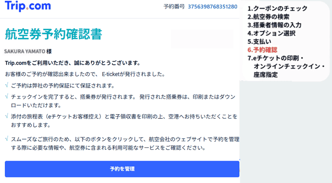 これで航空券の予約は完了です。