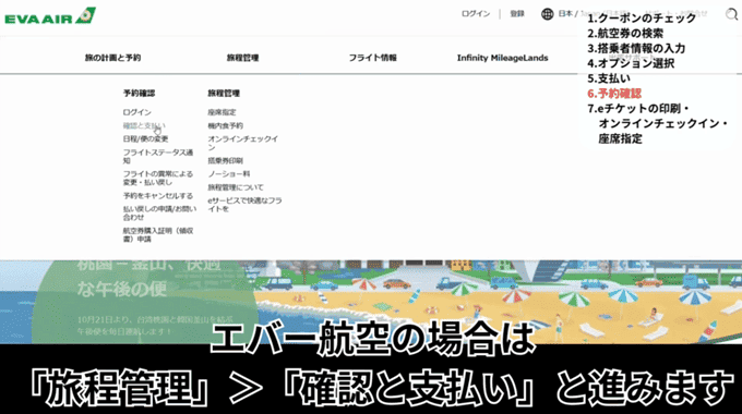 航空会社の公式サイトで予約ができているか確認しておきます。