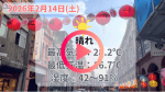 台北の天気と服装(大同市場)2026年2月14日(土)