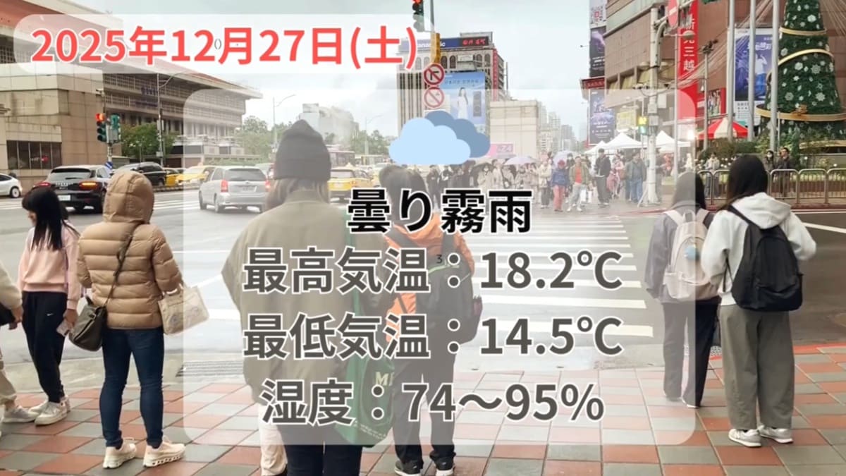 27日の気温は14.5~18.2℃。年末年始の気温の予報は以下の通りです。